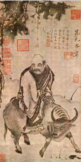 Hình vẽ về Lão Tử cưỡi trâu rời Trung Hoa. Nguồn: nhantu.net