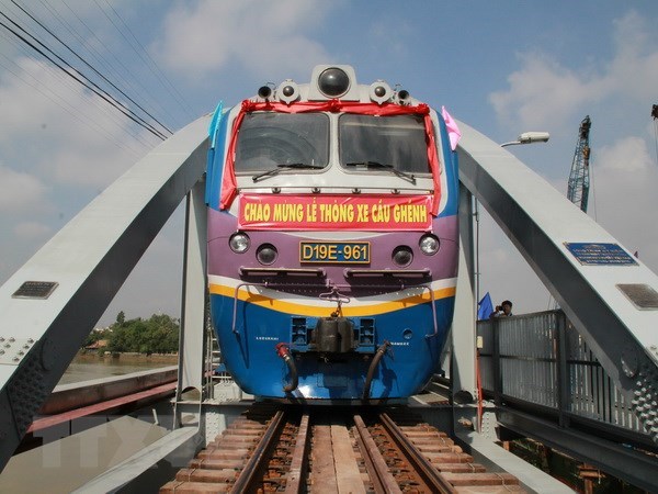 Các chuyến tàu Bắc – Nam đã chính thức được lưu thông qua cầu Ghềnh mới. Ảnh: Sỹ Tuyên/TTXVN.